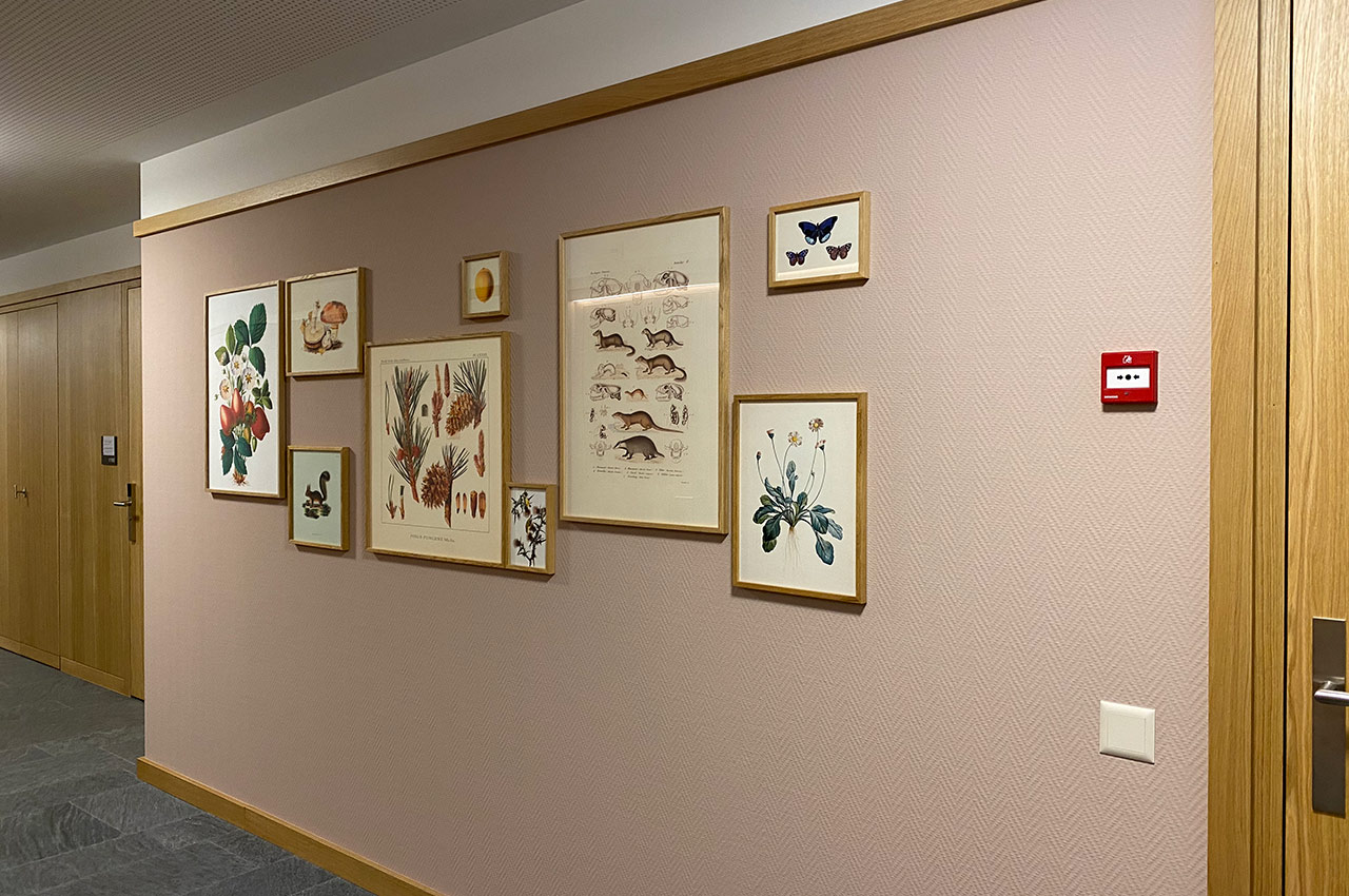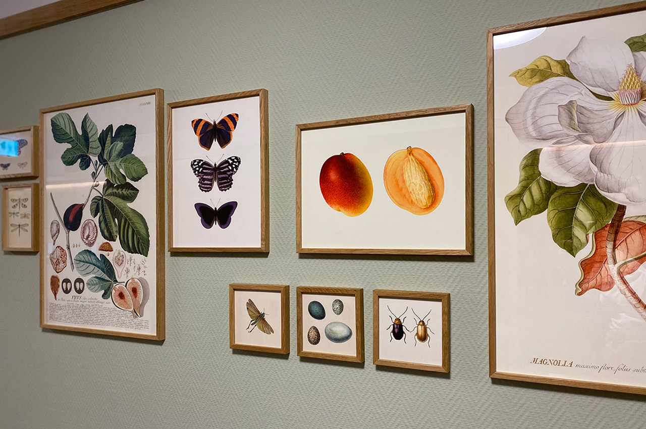 Grossformatige Wandgrafiken mit organischen Formen und zahlreiche Bildergalerien beleben nun die Korridorzonen, während Infotafeln und Pflanzengrafiken der Identifikation und Orientierung dienen.