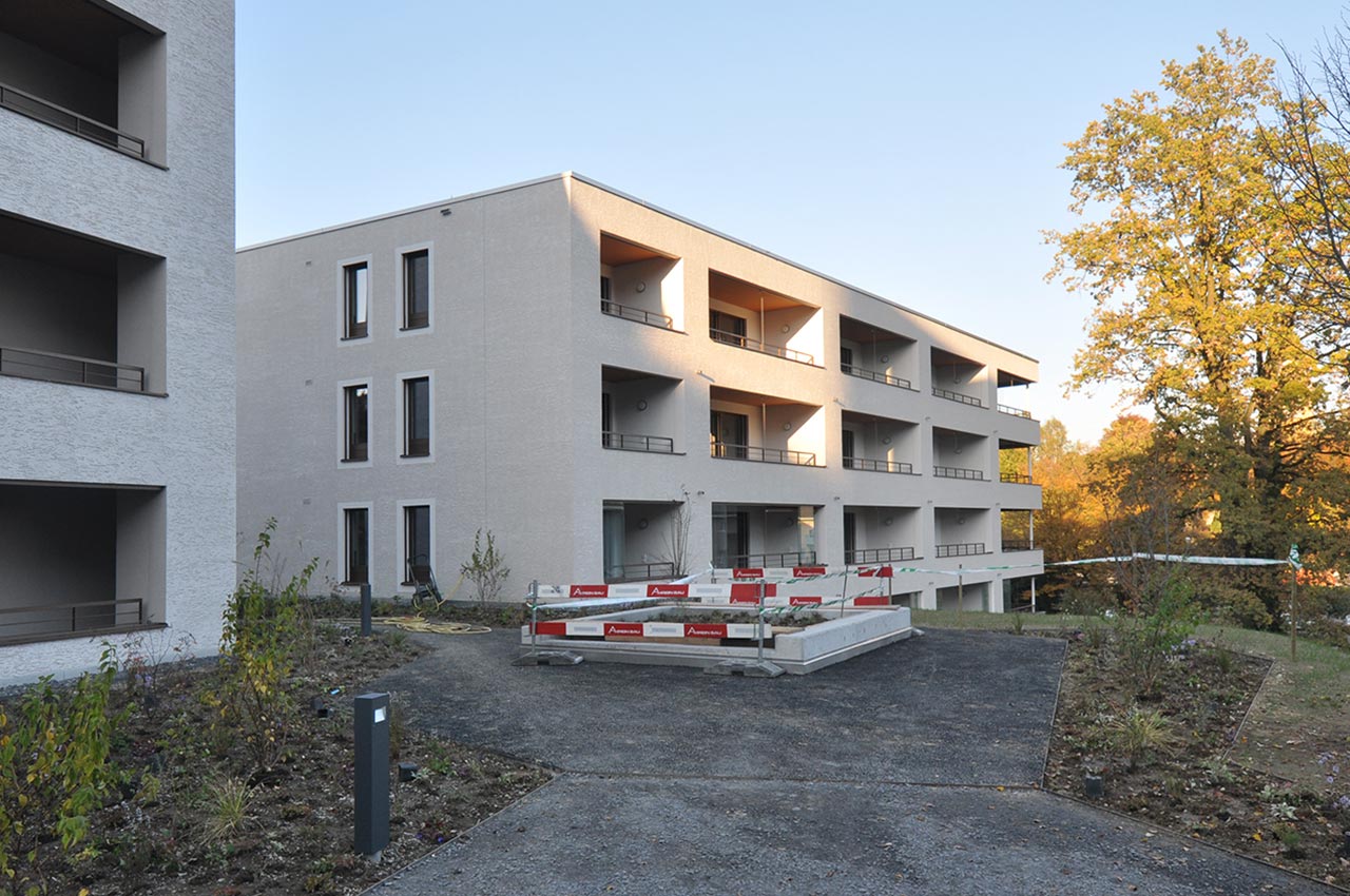 Die beiden Ersatzneubauten beherbergen Alterswohnungen unterschiedlicher Grössen und Grundrisse. Die Gebäudekörper schmiegen sich gleichsam in die leicht ansteigende Topografie der Haldenstrasse.