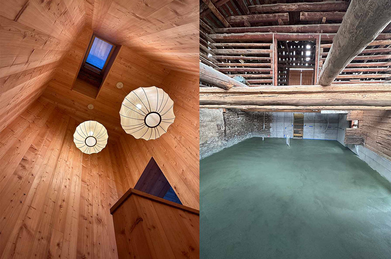 Dieses historische Stallgebäude im Val Lumnezia, wurde komplett entleert und in der Folge neu ausgebaut. Die markante Holzkonstruktion des Gebäudes zeugt von seiner ursprünglichen Nutzung. Erneuerungsarbeiten fanden an Dach, Fassadensockel und Umgebung statt.