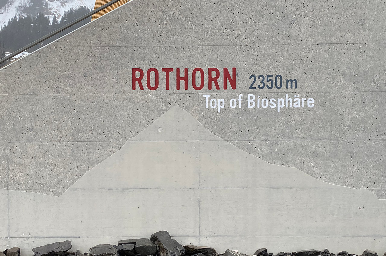 Die neu konzipierte und gestaltete Signaletik bietet Orientierungshilfen zur Gebäudeidentifikation, zur generellen Nutzungsübersicht und zur Richtungsweisung. So kann das «Erlebnis Brienzer Rothorn» von Luzerner Seite aus bequem erschlossen werden, sei es zum Wandern, Freeriden oder zum «Käfele» im neuen Biosphären-Restaurant.