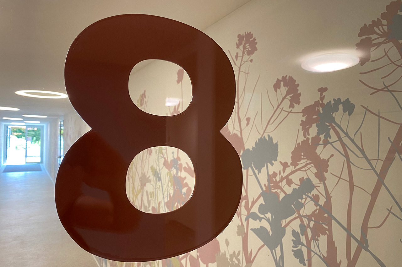 Drei lange Erschliessungskorridore wurden durch Terrazzoböden, Oblichter und Pflanzengrafiken aufgewertet, die Signaletik in Anlehnung an die Historie der Überbauung ausgebildet.