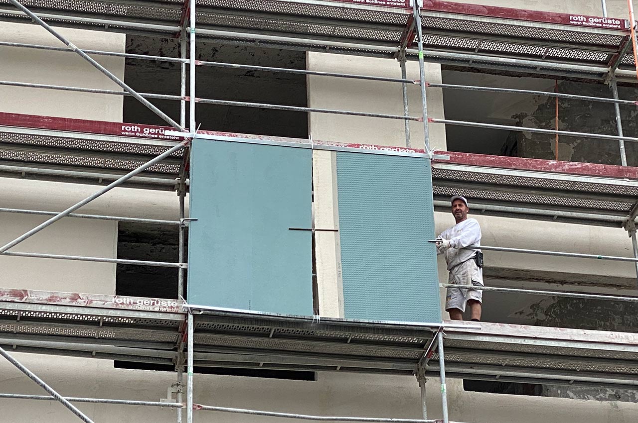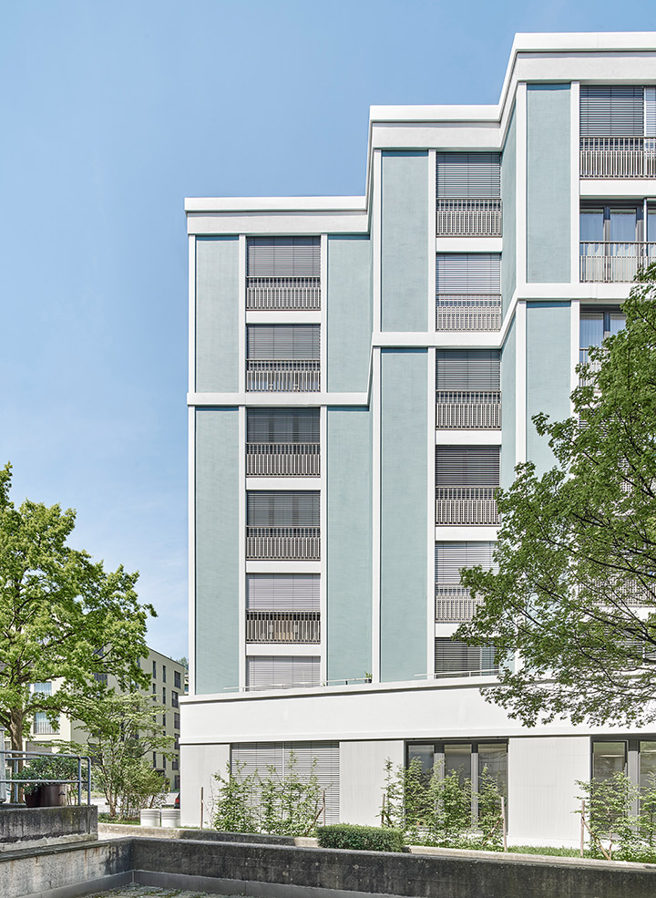 Durch eine einerseits klare, die Fassadenstruktur abbildende Farbgebung, andererseits durch eine subtile Differenzierung der farbtragenden Elemente in der Tiefe, ist eine Preziose entstanden, die den Krienser Stadtraum farbathmosphärisch anzureichern vermag.