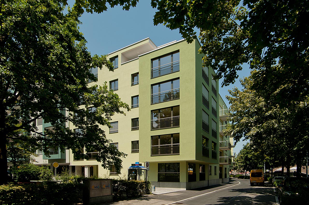 Die Wohnüberbauung an zentraler Lage ergänzt die Blockrandstruktur am Bestandsbau der Spannortstrasse 14. Deren Grundrissgeometrie folgt an der Neustadtstrasse der konvexen Strassenführung. Die Fassaden sind durch Erker-, Balkon-, Eingangssituationen und Französische Fenster charakterisiert.