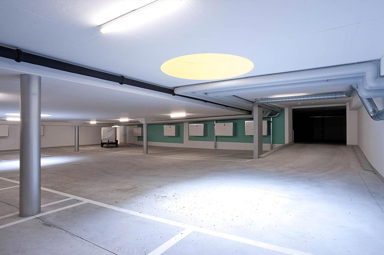 Aufgabe: Farbkonzeption Fassaden, Treppenhäuser, Einstellhalle, Signaletik
